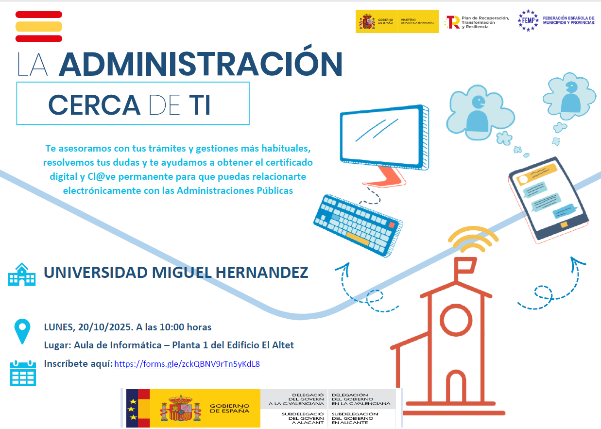 La Subdelegación del Gobierno en Alicante celebrará el próximo lunes, 20 de octubre, una jornada informativa en la Universidad Miguel Hernández, dirigida al estudiantado de la Facultad de Ciencias Sociales y Jurídicas de Elche.