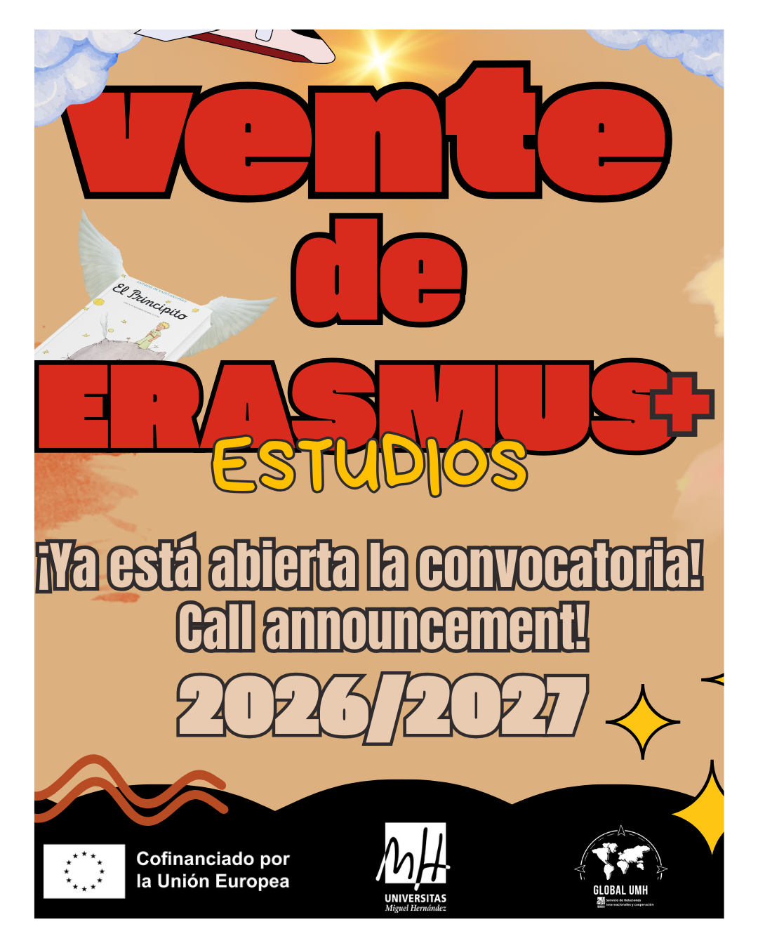 El Vicerrectorado de Internacionalización y Cooperación publica la convocatoria del programa de movilidad internacional ERASMUS + con fines de estudios para el curso académico 2025/2026.