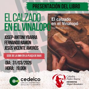 Este evento se enmarca dentro de las actividades impulsadas por la Cátedra Pedro Ibarra de la Universidad Miguel Hernández, en colaboración con el tejido empresarial local, y supone una excelente oportunidad para reflexionar sobre la importancia del sector del calzado, su legado y sus desafíos futuros.